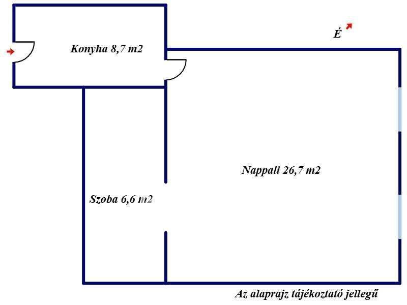 Tulajdoni lap szerint 1 szobás, de kialakításra került egy 6,6 m2-es HÁLÓFÜLKE beépített gardrób szekrényekkel, mely akár harmonika ajtóval vagy függyönnyel leválasztható.