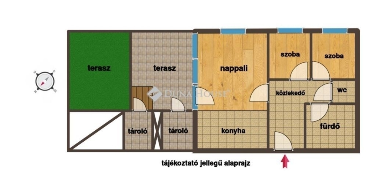 Az ingatlan 71 m²-es, nappali + amerikai konyhás elrendezésű, két külön nyíló szobával rendelkezik.