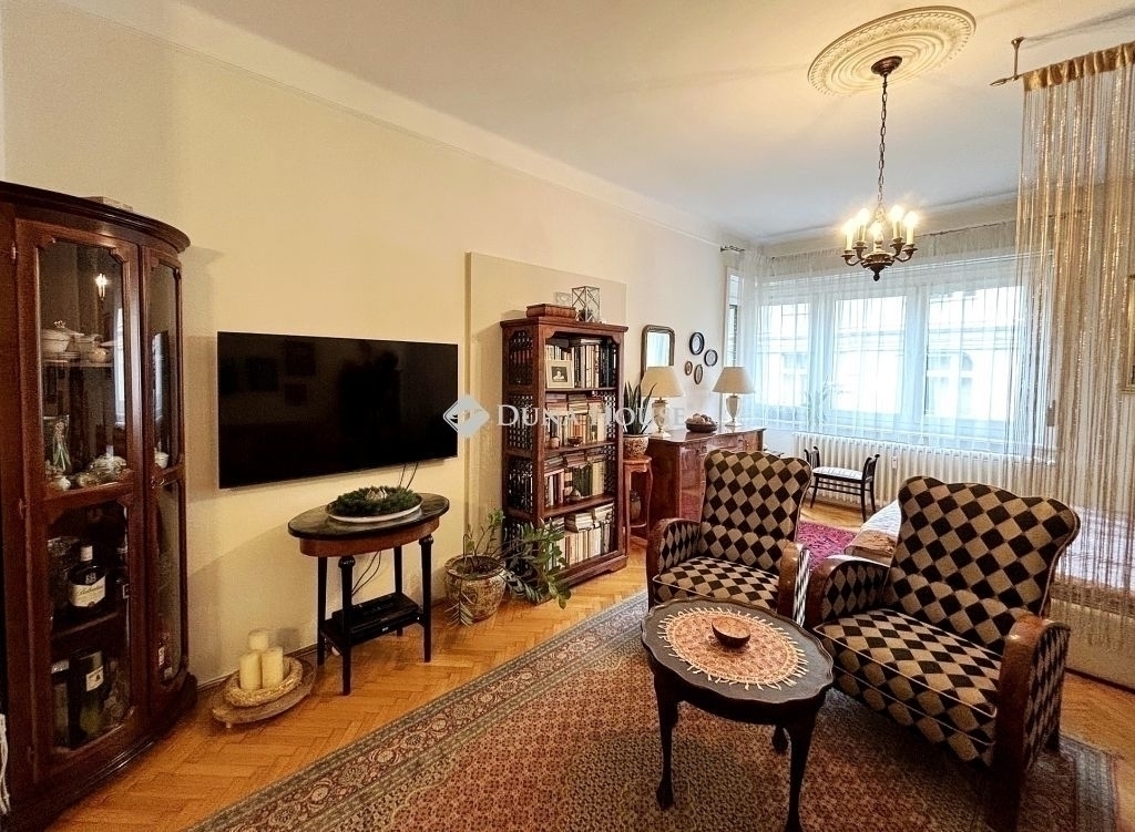 Eladóvá vált egy ritka adottságú, jól karbantartott nagypolgári lakás Újlipótváros egyik legkeresettebb részén.A XIII. kerület közkedvelt utcájában, a Hollán Ernő utcában rendezett, jó állapotú társasházában kínálunk megvételre egy 87 m² alapterületű lakást, amelyhez2 m²-es erkély is tartozik.Az ingatlan klasszikus nagypolgári jelleggel rendelkezik: közel 3 méteres belmagasság, tágas, jól tagolt terek és keleti tájolás jellemzi, aminek köszönhetően napfényes. Jelenlegi elrendezése szerint két szobával és egy félszobával rendelkezik, utóbbi gardróbként funkcionál, de igény szerint más célra is könnyen alakítható.A lakás jó állapotú, a legutóbbi felújítás 2011-ben történt, amelynek során megújultak a burkolatok, megtörtént a teljes falfestés, a parketta csiszolása és lakkozása, valamint az ajtók és ablakok festése és az elektromos hálózat átvizsgálása is. Az ingatlan azóta is folyamatosan karbantartott.A társasház kívül-belül rendezett, az ingatlanhoz közös használatú tároló is tartozik.A bútorok nem képezik a vételár részét, azok a vevői ajánlattól függően külön megállapodás tárgyát képezhetik.Az ingatlan tehermentes, jogilag rendezett.Az elhelyezkedés Újlipótváros egyik legnagyobb előnye: a környéken sétatávolságon belül kávézók, éttermek, pékségek, galériák és színházak érhetők el, miközben a mindennapi bevásárlás is könnyen megoldható. A Westend Bevásárlóközpont közelsége gyors és kényelmes vásárlási lehetőséget biztosít, mégis megmarad a városrészre jellemző nyugodt, polgári hangulat. A környék kiváló tömegközlekedési kapcsolatokkal rendelkezik, több villamos- és buszjárat, valamint metró is rövid időn belül elérhető.Az ingatlan saját célra ideális választás, ugyanakkor elhelyezkedése és adottságai miatt befektetésnek is kifejezetten ajánlott, hosszú távon is stabil értéket képvisel.