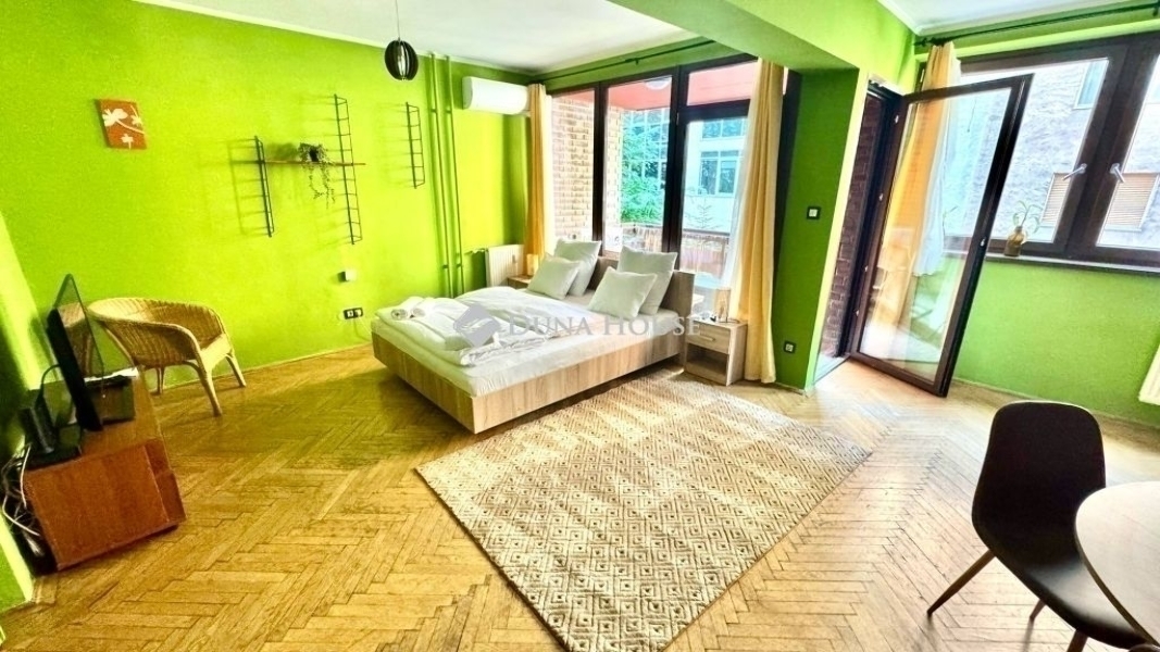 XIII. ker. Újlipótváros kedvelt részén, a Kresz Géza utcában eladó egy 63m2-es, déli fekvésű, nagyrészt csendes közre néző, napfényben úszó, tágas terekkel rendelkező, 1. emeleti lakás. Jelenlegi beosztását tekintve, egy nagy nappalival és egy hálóval rendelkezik, de könnyedén kialakítható még egy háló, igény esetén, de akár rendelőnek vagy irodának is kifejezetten alkalmas. A környéket szerintem nem kell bemutatni, a város egyik legélhetőbb negyede, minőségi urbanista élettér.