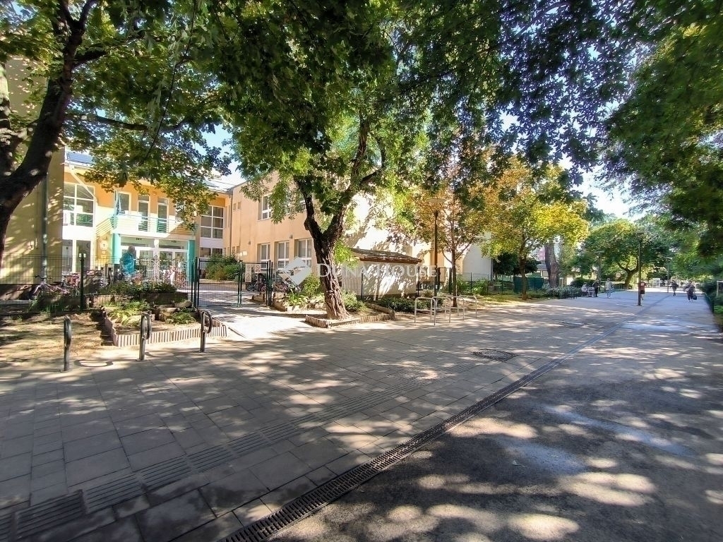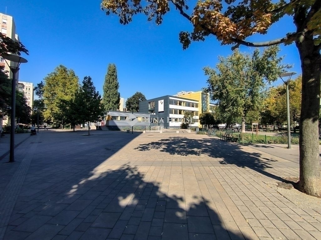 A ház mögött parkosított, zárt játszótér, közelben óvoda, iskola, rendelő, kórház, Spar, Lidl, Rossmann.