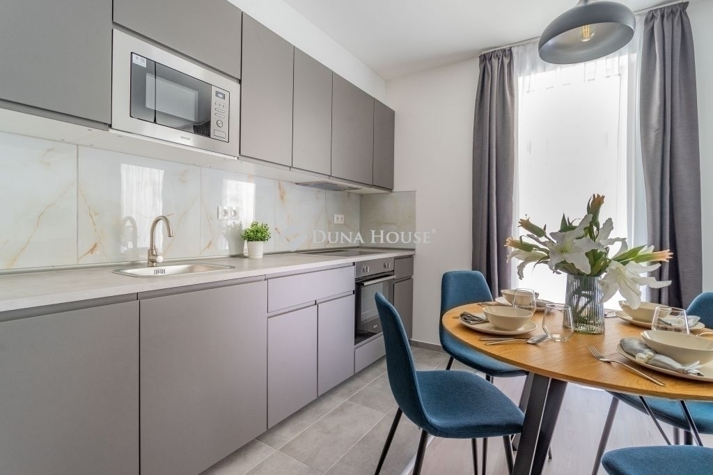 Eladó ERKÉLYES lakás Lőportárdűlőn! Eladó 47nm+9nm erkélyes lakás a XIII. kerületben, 2023-ban épült társasházban. Az ingatlan első emeleti, kertes udvarra néz, nem utcára. Fűtése házközponti fűtés egyedi méréssel. A közös költség 22.344FtA fotókon látható bútorokat kötelező megvásárolni, melyeknek ára a vételáron felül +4 millió Ft. Tároló, garázs nem tartozik hozzá. Nagyszerű lehetőség! A belváros pillanatok alatt elérhető. További információért, megtekintéssel kapcsolatban keressen elérhetőségeim valamelyikén. Hibás hirdetés bejelentése