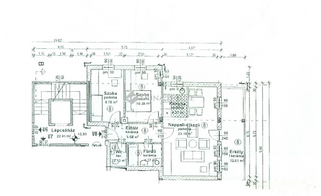 A burkolatok, szaniterek, konyhabútor az eredetiek.