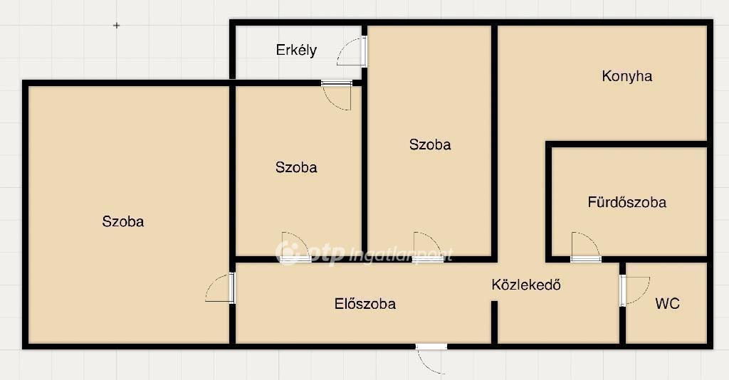 A lakás elrendezése praktikus: három külön nyíló szoba, külön fürdőszoba és WC, valamint gépesített konyha (főzőlap, sütő, elszívó, mosogatógép, hűtő és mikró). Az egyik szoba gipszkarton fallal került leválasztásra, amely igény esetén könnyen visszaalakítható egy nagy amerikai konyhás nappalivá. Az ingatlanhoz erkély tartozik, amely két szobából is megközelíthető, továbbá klíma gondoskodik a kellemes hőmérsékletről.