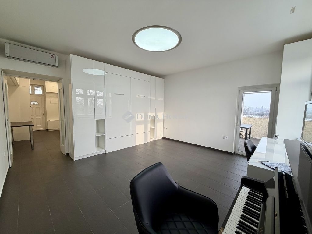 Prémium garzonlakás eladó a XIII. kerület legkedveltebb részén panorámás terasszal, teljes bútorzattal, teljeskörű felújítássalA város egyik legkedveltebb részén, egy rendezett, folyamatosan karbantartott társasház 3. emeletén kínáljuk eladásra ezt a 43 m²-es, prémium kategóriás művészlakást, mely korábban Szécsii Pál otthona volt. A házban idén épül az új lift, ami tovább növeli a kényelmet és értéket.A lakás teljeskörű, magas színvonalú felújítást kapott: új villany- és vízvezetékek, prémium burkolatok, minőségi műanyag nyílászárók, modern rejtett világítás, mozgásérzékelős fénykapcsolók, padlófűtés a maximális komfortért.A belső terek asztalos által gyártott, magasfényű, egyedi bútorokkal készültek, amelyek igényes megjelenést és bőséges tárolóhelyet biztosítanak. A nappaliban praktikus szekrényágy kapott helyet, így a teret a lehető legjobban kihasználva.A konyha teljesen felszerelt: prémium gépekkel, modern konyhabútorral és minden kényelmi elemmel. A lakás teljes bútorzattal együtt eladó, azonnal költözhető.A panorámás terasz igazi ritkaság: ideális pihenéshez, akár sütögetéshez is.Főbb előnyök: 43 m²-es prémium garzon korábban Széchenyi Pál otthona panorámás, napfényes terasz padlófűtés, rejtett világítások, mozgásérzékelős kapcsolók teljes bútorzat, egyedi beépített bútorok alacsony rezsi, kedvező közös költség rendezett ház, épülő lifttel kiváló tömegközlekedés és lokáció azonnal költözhetőIngyenes hiteltanácsadással,további kérésekkel szívesen segítek hétvégén is! Hibás hirdetés bejelentése