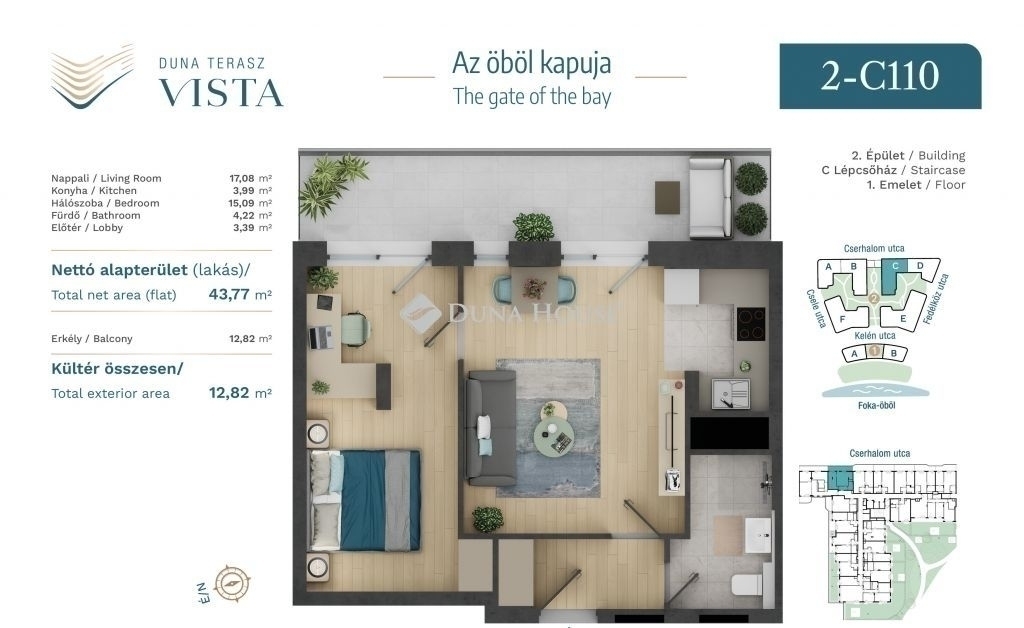 Duna-parti befektetés prémium lokációban Az Öböl Kapuja!Eladó egy 2 szobás, napfényes, 44 m²-es lakás 13 m² erkéllyel Budapest egyik legexkluzívabb fejlesztésében, a Marina parton. Az ingatlan utcára néző, világos, modern kialakítású, ideális rövid- vagy hosszú távú bérbeadásra, illetve értékálló befektetésnek.-Tervezett átadás 2026 szeptemberA projekt különlegessége a vízparti elhelyezkedés, a lenyűgöző dunai panoráma, valamint a modern, hullámzó homlokzati kialakítás. A korlátozottan elérhető Duna-parti ingatlanok értéke évről évre jelentős mértékben növekszik, keresettségük miatt gyorsan és könnyedén bérbe adhatók akár prémium hozammal.Műszaki és kényelmi jellemzők:Energiatakarékos mennyezeti hűtés-fűtésRecepció, portaszolgálat és csomagpontMagas színvonalú építési minőségKözösségi szolgáltatások:Tetőteraszok napozóval, jóga- és grillfunkcióvalKözösségi nappali, kültéri és beltéri játszótérFűszerkert, pihenőpark, outdoor officeSporteszköz- és fészerraktár, kerékpártárolókPorta- és őrszolgálatLokáció és elérhetőség:A lakópark a Vizafogó városrészben épül, amely az elmúlt évek egyik legdinamikusabban fejlődő területe.Pár perc sétára a Duna-part, Marina sétány, teniszpályák, játszóterek, éttermek, kávézók, kikötők és kültéri edzőtermek.Közlekedés szempontjából is ideális: a 3-as metró, buszok, bicikliút és hajókikötő is könnyedén elérhető így a belváros akár hajóval is megközelíthető.