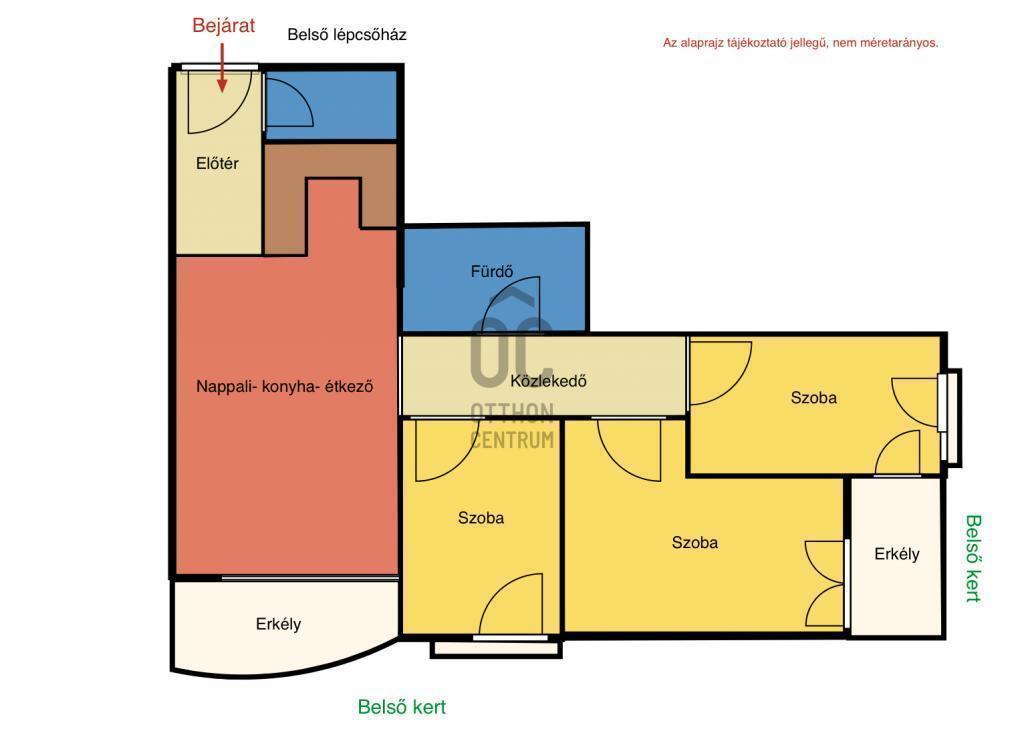 - Nappali + amerikai konyha + 3 külön nyíló szoba