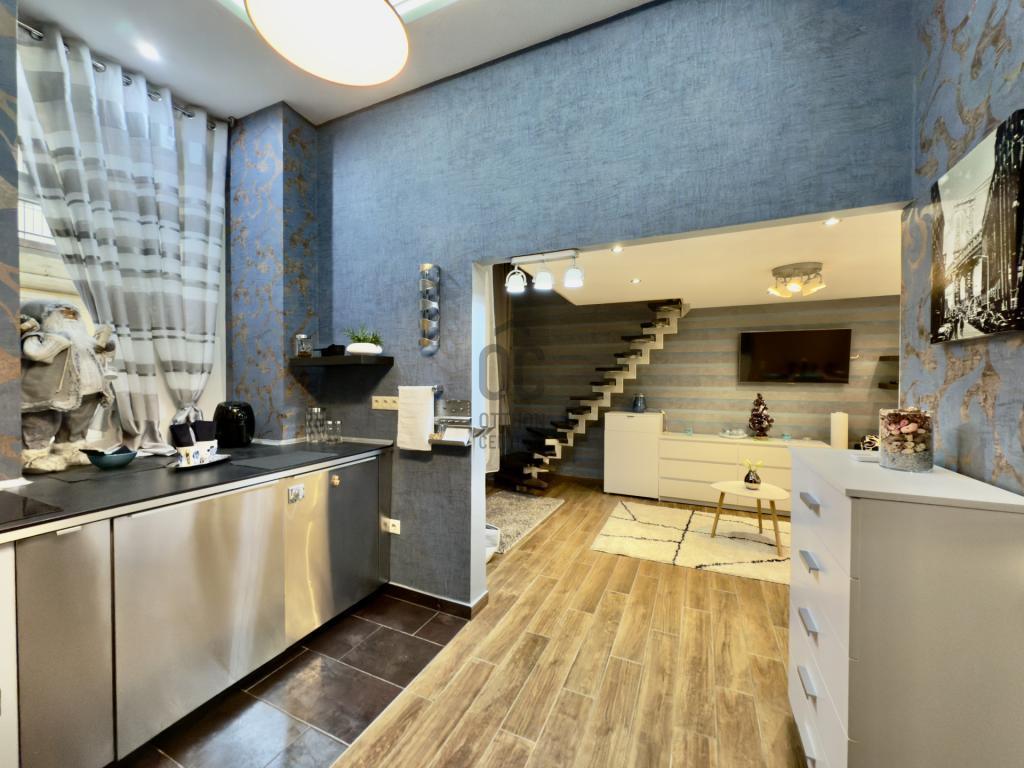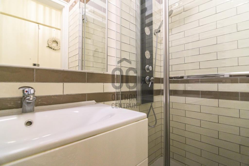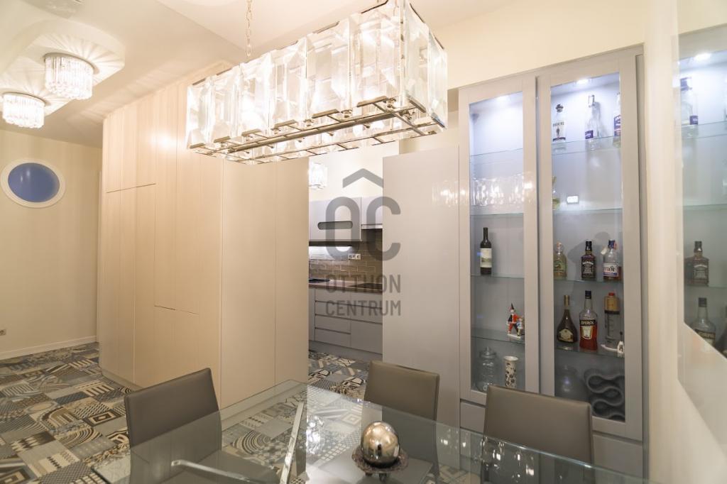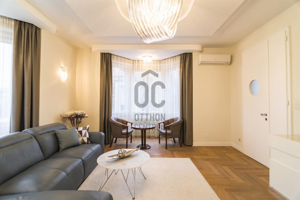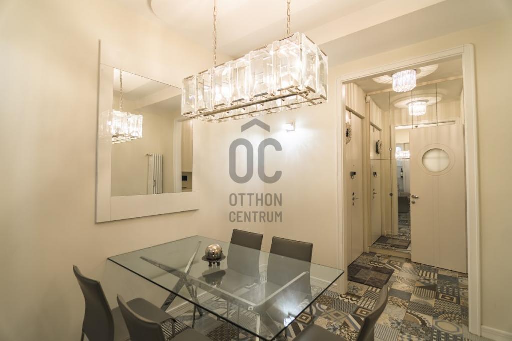 A 4. emeleti saroklakás pár éve teljeskörű műszaki és esztétikai felújításon esett át. A belsőépítész tervei szerint egyedi ajtók, bútorok és burkolatok kerültek beépítésre. A lakás különlegessége a fantasztikus hangulatot teremtő csillárok, amelyek exkluzív megjelenésükkel plusz eleganciát visznek a térbe.