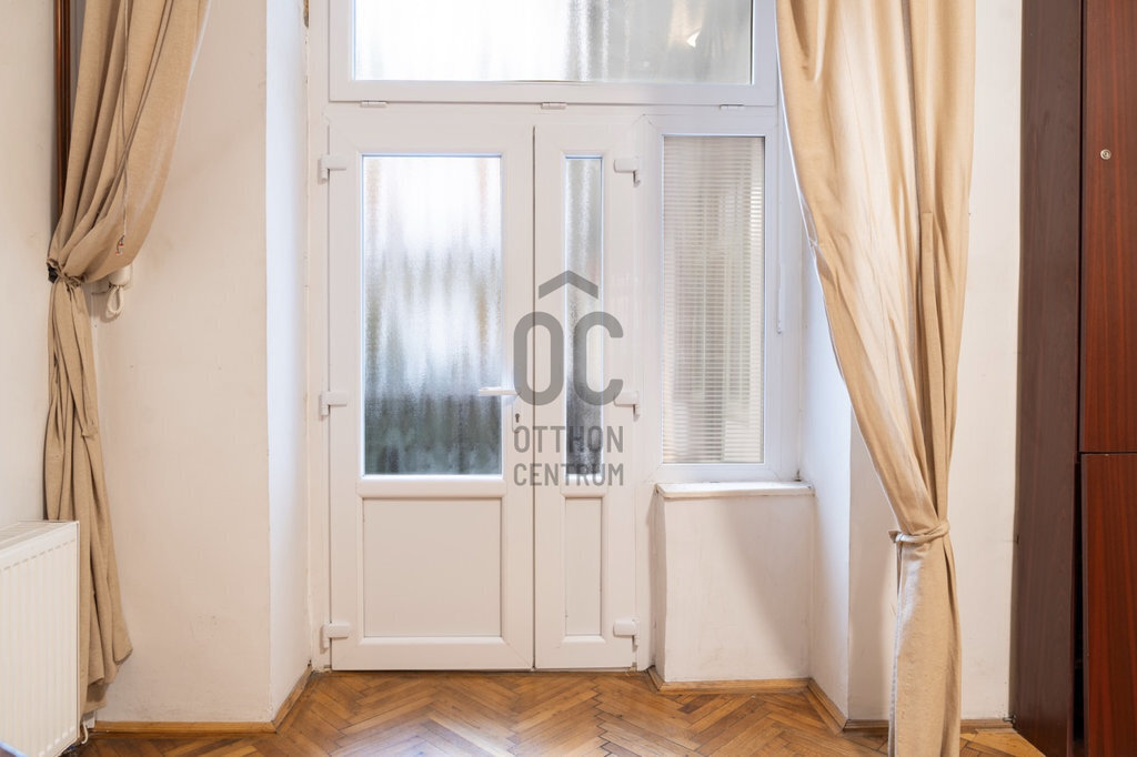 A lakás két külön bejárattal rendelkezik, mindkettő a körfolyosóról nyílik, ami ritka adottság, és kiváló lehetőséget biztosít akár két különálló lakás kialakítására vagy többfunkciós hasznosításra