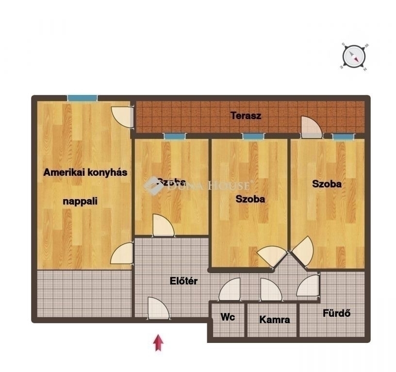 Az átgondolt a tervezésnek köszönhetően a 82 m2-es alapterületen a 28 m2-es amerikai konyhás nappali és a három, teljes értékű hálószoba mellett egy normál méretű fürdőszoba, egy plusz külön wc és egy kamra (tároló) is helyet kapott. Az erkély 10 m2-es, a nappaliból és a legnagyobb hálóból lehet kijutni.