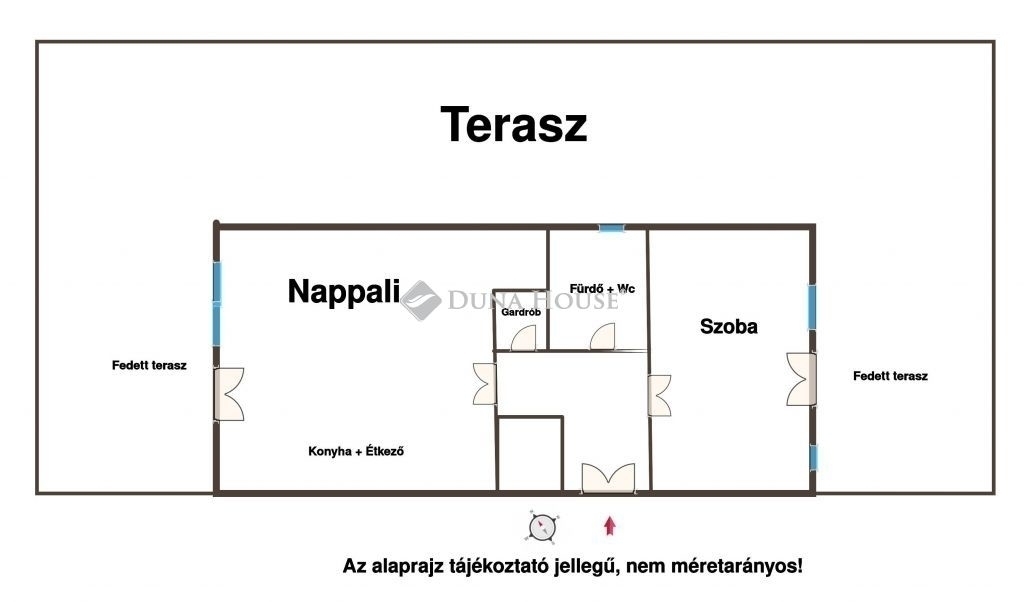Terasz: 100 m²-es,minden irányból elérhető, zavartalan panoráma Amerikai konyhás nappali: elegáns, világos, igényes burkolatokkal, közvetlen teraszkapcsolattal Hálószoba: kényelmes méretű, redőnnyel szerelt ablakok biztosítják a nyugodt pihenést Fürdőszoba és mellékhelyiség: külön helyiségben, modern kialakításban, redőny: minden ablakon, a teljes kényelemért és árnyékolásért