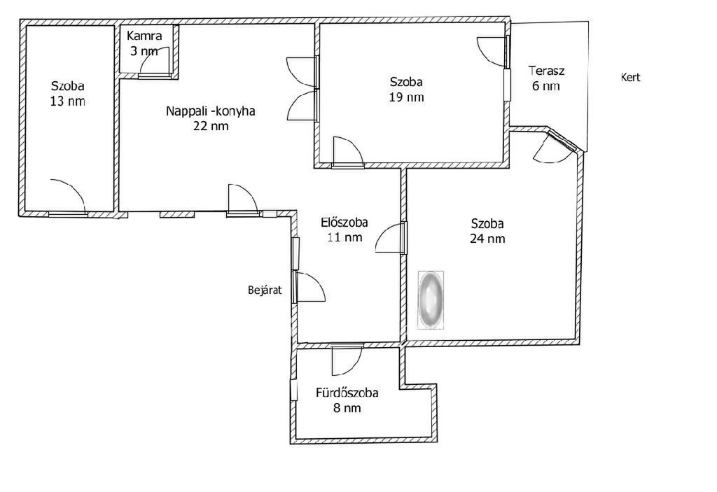 A belső terek 3,2 méteres belmagassága elegáns, levegős érzetet biztosít, a tágas amerikai konyhás nappali központi dísze pedig egy egyedileg beépített kandalló, amely ritka és hangulatos eleme a lakásnak. A szobákból közvetlen kijárás nyílik a 6 nm-es saját teraszra, amelyen keresztül a kertkapcsolat előnyeit is élvezhetjük a város szívében.
