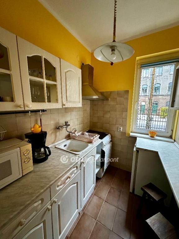 - Ablakos konyha, gépesítve (mosógép, hűtő, mikró)
