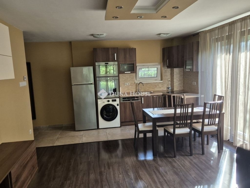 Alsórákos kedvelt, rendezett társasházakkal kialakított, zöldövezeti részén, csendes mellékutcában eladó egy 2015-ben magas minőségben épült, 7 lakásos társasház földszintjén található, tehermentes, 67 m2-es, amerikai konyhás nappali + két külön nyíló hálószobás, dupla klímás lakás terasszal és kertkapcsolattal. A remek lehetőségeket nyújtó kertrész - folyamatosan kertész által gondozott, osztatlan közös tulajdonú, de mivel a lakás közvetlen kertkapcsolata, így csak a lakásban élők használják - kiváló lehetőség kisgyerekkel, háziállattal, vagy azok számára, akik a városi életvitelük kapcsán egy családi házat nem szeretnének fenntartani, de vágynak egy kis saját zöld területre. Vételár részét képezi a gépesített konyhabútor, a teremgarázs beálló és a tároló. A beálló az átlagosnál nagyobb méretű és akár szeparálható is, a tároló pedig közvetlenül a beálló mögött helyezkedik el.