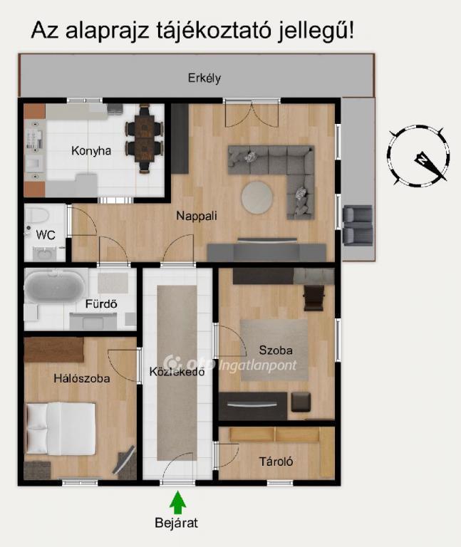 A fűtést cirkó rendszer biztosítja, a rezsi kb. 30 000 Ft, a közös költség 20 800 Ft. A lakás tehermentes, 1/1 tulajdonban van, hitelezhető. A vételár a bútorokat is tartalmazza, így az ingatlan teljes berendezéssel együtt azonnal költözhető.