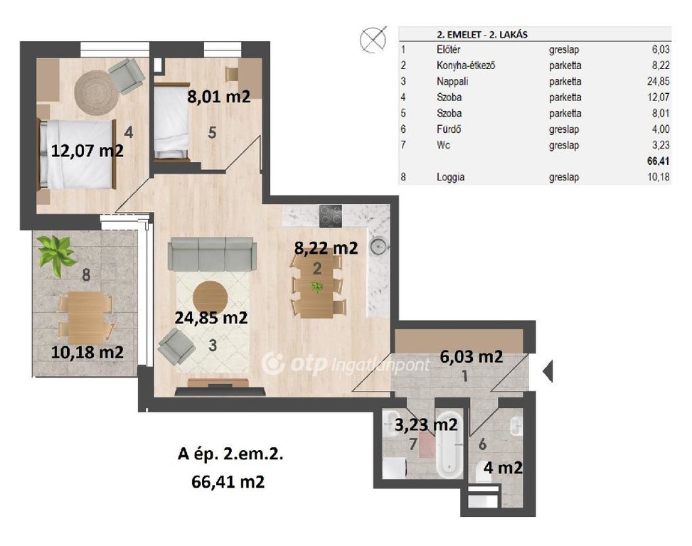 Prémium új építésű otthonok Zuglóban, ahol az infrastruktúra és a nyugalom találkozik. Eladó 3 szobás: nappali plussz2hálószobás, második emeleti, 66,41 nm-es lakás. Az otthon kényelméhez hozzájárul továbbá a 10,18 nm-es loggia. Budapest XIV. kerületének egyik csendes, mégis kiváló közlekedéssel és infrastruktúrával rendelkező részén kínálunk megvételre kiemelkedő minőségű, új építésű lakásokat egy exkluzív, kis lakásszámú projektben. A beruházás két különálló épületből áll, épületenként 3 szint, összesen 22 lakás, amely ideális választás mind saját otthonnak, mind értékálló befektetésnek. Megbízható, tapasztalt kivitelező, osztrák minőségi szemléletet követ. A projektet referenciákkal rendelkező, nagy tapasztalatú kivitelező valósítja meg, aki a munkálatok során szigorúan betartja az osztrák építőipari szabályokat és minőségi előírásokat. Az eredmény: hosszú távon is értékálló, prémium szintű lakóingatlan. Lakástípusok minden élethelyzetre találhatóak itt. Lakásméretek garzontól egészen 5 szobás otthonig Földszinten kertkapcsolatos lakásokat terveztek. Parkosított, közös használatú belső udvart alakítanak ki szabadidőtöltésre. Főbb jellemzők: modern, energiatudatos műszaki tartalom: házközponti hűtés-fűtés hőszivattyúkkal, oldalfali fan-coil készülékek, napelemes villamosenergia-ellátás, teremgarázsban vásárolható parkolóhelyek, emelő berendezéssel. Kiemelkedő szerkezeti és akusztikai megoldások:hanggátló lakáselválasztó rendszer, prémium belső anyaghasználat pl. lakásokon belül vízálló laminált padló; fóliázott fehér vagy festhető MDF szegélyek; prémium német villamos anyagok. Átadás: 2026. év vége. Bővebb információért keressen a hét bármely napján telefonon. Amennyiben pénzügyi tanácsra van szüksége, abban is készséggel állunk rendelkezésére, az OTP Bank többféle lakásfinanszírozási lehetőséget kínál ügyfeleink számára. Referenciaszám: M323867
