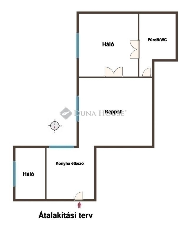 A lakás egyik nagy előnye, hogy nem aprózott, nem szűk érzetű, hanem van benne levegő és mozgástér. A jelenlegi elosztás szerint tágas nappali, külön háló, étkezős konyha, fürdő és külön WC áll rendelkezésre. A vizes helyiségek kialakítása jelen formájában nem a lakás legerősebb pontja, viszont az összkép mégis pozitív, mert a fő terek jól használhatók, és az egész ingatlanban ott van az átalakítási potenciál.