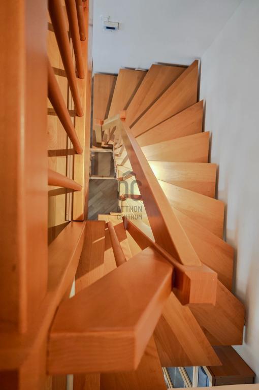 - A felső szintre a nappaliból igényes és kényelmes fa lépcsőn át juthatunk.