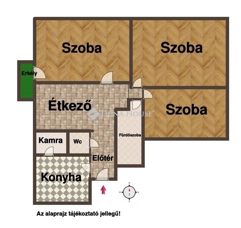 Az elrendezés kifejezetten praktikus: három külön nyíló hálószoba és egy világos nappali-étkező található benne, az egyik szobához pedig kis erkély is tartozik.