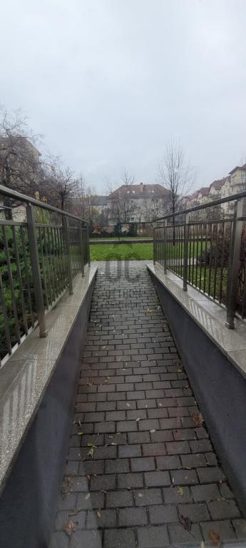 Elegáns, falba süllyesztett ajtók, klíma, rendezett társasház — és egy különleges extra: a szomszédos telek is a társasházhoz tartozik, így az ingatlan nem néz közvetlenül másik épületre, ami ritka, levegős, szellős környezetet ad.