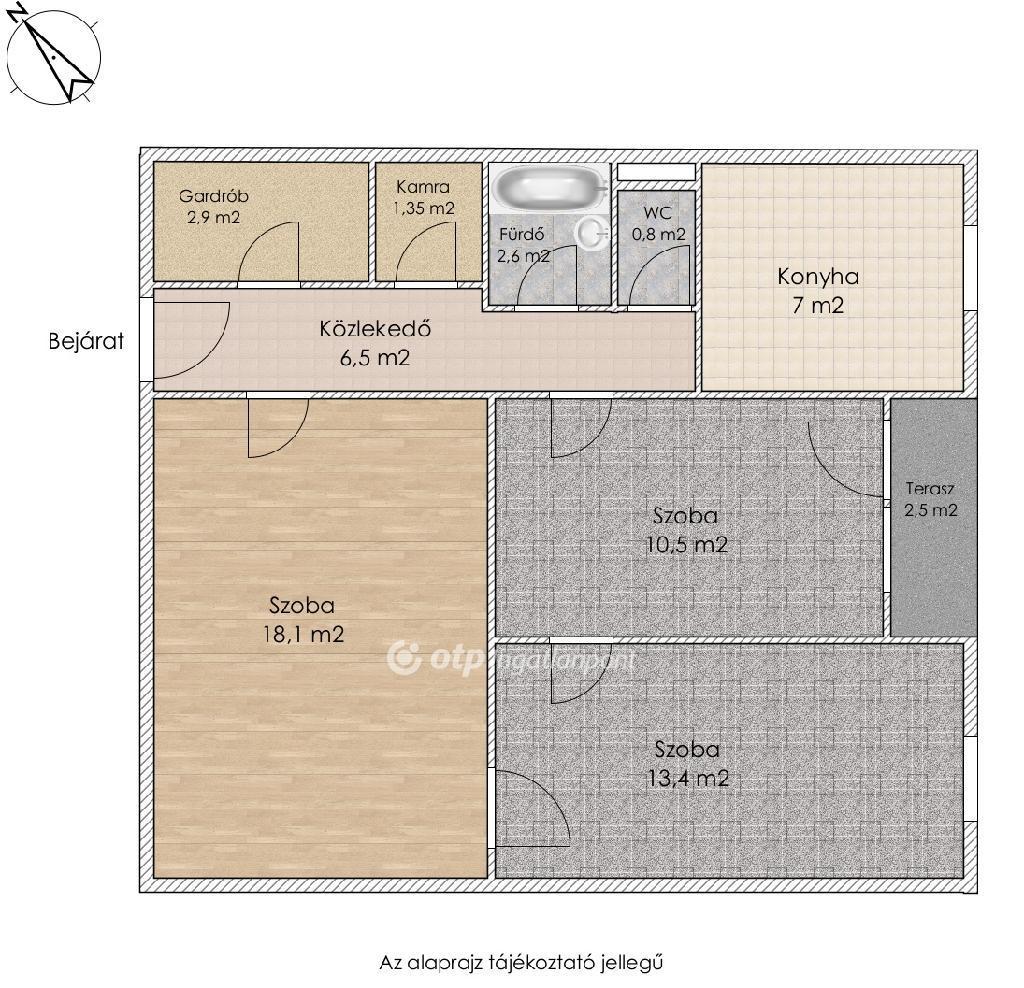 Az ingatlan három külön nyíló szobával rendelkezik, így ideális választás családok számára, de befektetési célra is remek lehetőség, hiszen könnyen kiadható. A fürdőszoba és a WC külön helyiségben található, a lakásban konyha, gardrób és kamra is kialakításra került, amelyek kényelmes tárolási lehetőséget biztosítanak.