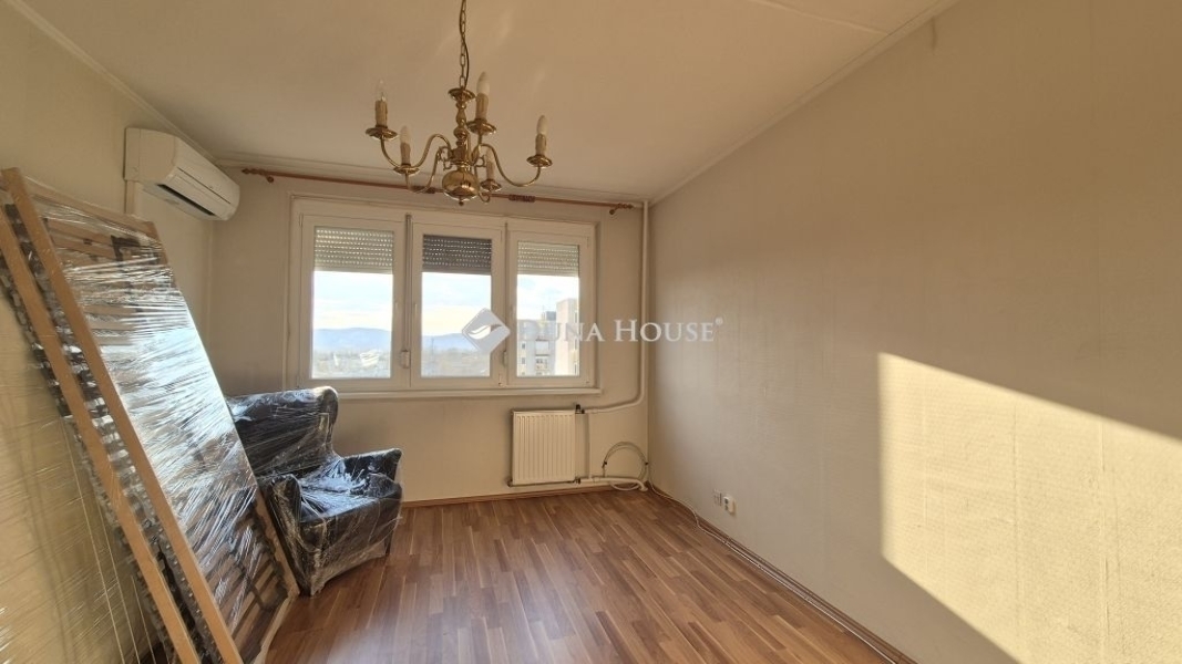 XV. kerület kedvelt részén a Csobogós utcában eladó egy 1,5 szobás, 34 nm-es, nagyon VILÁGOS, TEHERMENTES, 9. emeleti lakás, liftes társasházban!Jellemzői:- hűtő-fűtő Mitsubishi tipusú klimaberendezés- házközponti fűtés- hideg és melegvíz, illetve a villany mérőórák szerinti elszámolásúak- cserélt műanyag nyílászárók, szúnyoghálóval és redőnyökkel- azonnal birtokba vehető- a kilátás egyedülálló: az Ủjpesti Viztorony és a budai hegyek látványa tárul elénk- a fürdőben a burkolatok néhány éve lettek cserélve- ingyenes parkolás a ház körül.A környék:- a Szilas patak melletti csendes zöld környezetben található- iskola, óvoda, játszótér a közelben- orvosi rendelő, gyógyszertár, boltok néhány percnyi távolságra- remek közlekedés, az 5-ös busz végállomása 2 perc sétányira- éjszakai buszjárat.