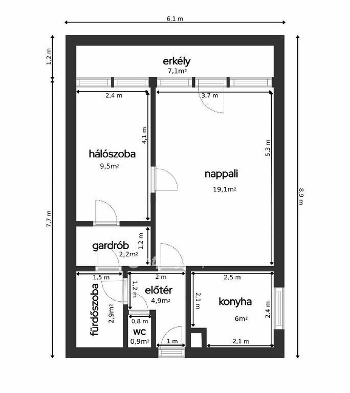 HELYISÉGEK: előszoba, étkezős konyha, nappali, hálószoba, gardrób, kádas fürdőszoba, wc, erkély