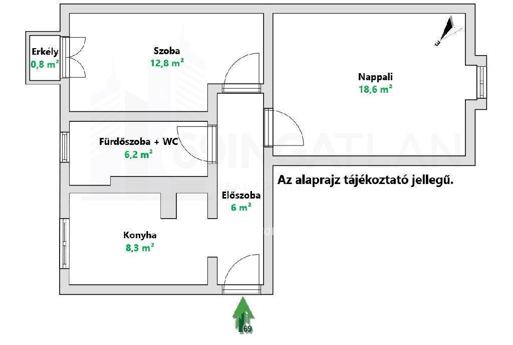A lakás elrendezése praktikus: két világos, jól szeparált szoba, konyha, fürdőszoba található benne. A lakás esztétikai felújítást igényel, így az új tulajdonos teljesen saját ízlésére formálhatja.
