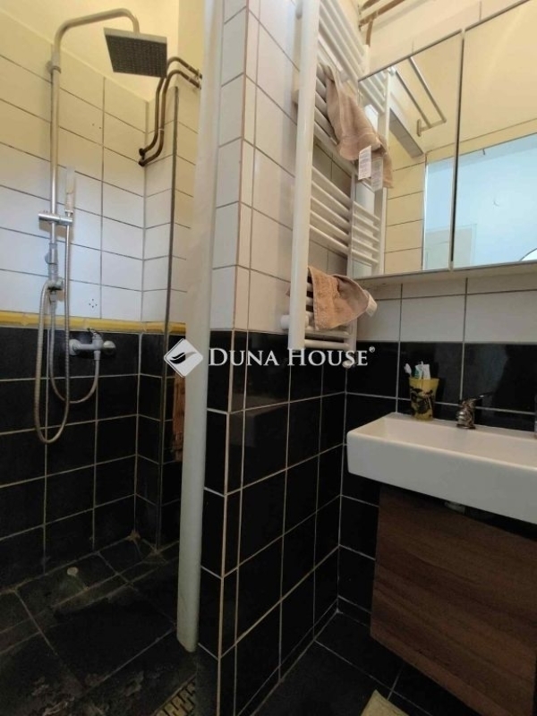 Eladó lakás, házrész!Az ajánlat részét képezi egy 27 nm-es lakás, és egy abból nyíló, jelenleg szobaként használt 17 nm-es üzlethelyiség.A lakás egy földszintes, hatlakásos, osztatlan közös kertből nyílik. Tartozik hozzá egy egyállásos parkoló, és egy külön, zárható 5 nm-es kerti tárolóhelyiség, valamint egy nagy, körülkerített, ajtóval ellátott terasz, mely tökéletes helyszín reggelihez, napozáshoz, vagy akár kisebb növények ültetéséhez is.A teraszról a lakásba lépve egy világos előszobába jutunk, innen nyílik egyik oldalról a WC, másik oldalról a két részre osztott fürdőszoba, melynek egyik fele mosdóként, a másik zuhanyzóként funkcionál. Az előszoba és fürdőszoba fölött nagy méretű, belső padlás található, amely tökéletes tárolásra, de kis fantáziával egyéb célra is átalakítható. Ide lenyitható lépcsőn lehet feljutni.Az előszobából a szintén napsütötte amerikai konyhás nappaliba jutunk, amelyhez tartozik egy 10 nm-es állógaléria is, amely 10 nm-el növeli az ingatlan hasznos területét. Az előszoba és a nappali alatt padlófűtés is található. A nappaliból juthatunk a tulajdoni lapon üzlethelyiségként feltüntetett szobába, melynek belmagassága szintén lehetővé teszi egy kényelmes állógaléria esetleges kialakítását. Az üzlethelyiség jelenleg saját bejárattal rendelkezik, mely az utcára nyílik. Igény szerint ez az ajtó könnyedén befalazható.A ház jól szigetelt, ablakai kiváló minőségűek, fűtése gazdaságos.A közlekedési lehetőségek is nagyon jók, a lakás közvetlen közelében az alábbi buszok állnak meg: 5, 25, 96, 124, 296, 296A, de a 196-os és a 231-es busz is pár perc sétára áll meg.A környék kiváló lehetőségeket nyújt azoknak, akik a belváros zsúfoltsága helyett a kisvárosi élet előnyeit Budapesten belül élveznék.Ára: 48 000 000 forint Hibás hirdetés bejelentése