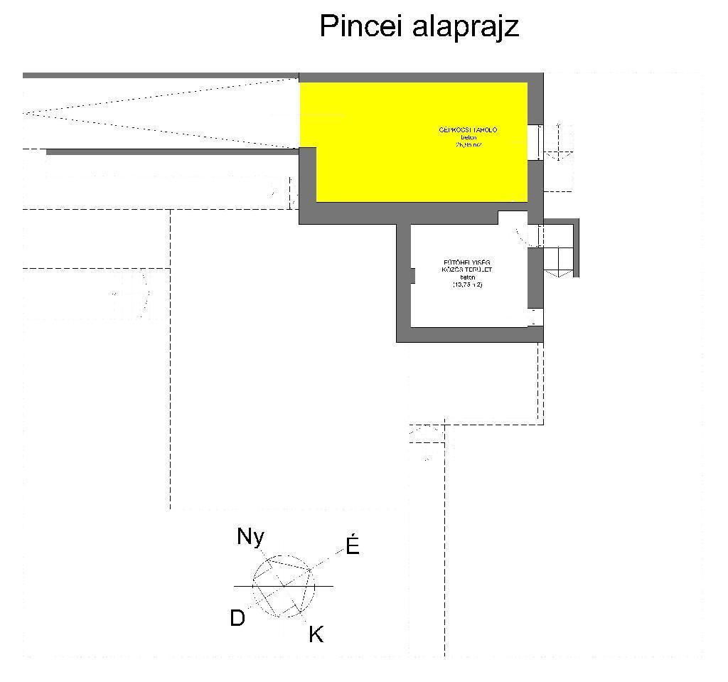 Az alagsorban egyállásos garázs található egy alacsony építésű gépjárművel is jól járható lehajtóval. A földszinten egy az előszobából nyíló dolgozó és az emeltre felvezető lépcső kapott helyet. Az emeleten tágas, egymásba nyíló nappali-étkező-konyha található, valamint három félszoba és káddal, de zuhanyzóval is felszerelt fürdő-WC áll rendelkezésre.