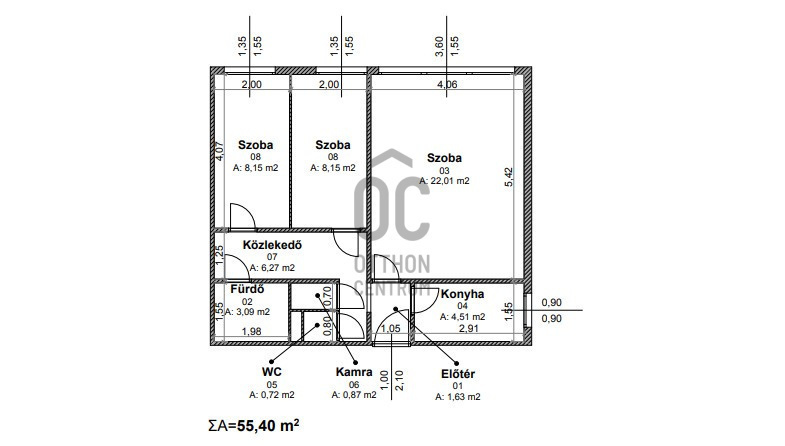 3 külön nyíló szoba + nappali/étkező