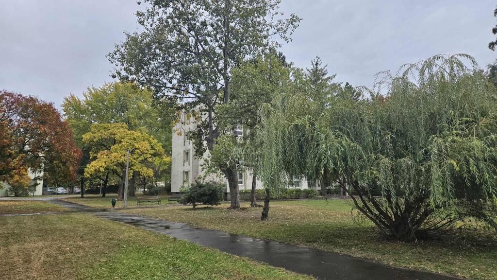 Környezet: A közpark átmenő autós forgalomtól elzárt, parkolókkal ellátott lakó-zöldövezet.