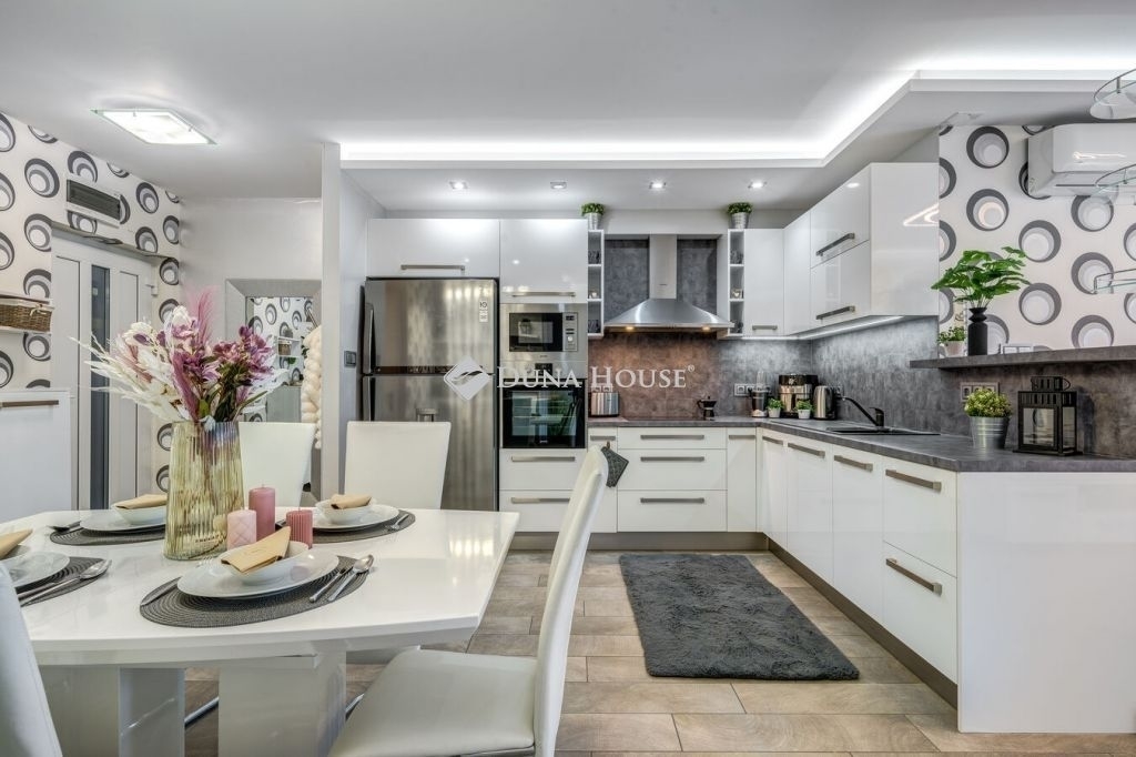 Ön sem szeretne kompromisszumot kötni a lakóparkos környezetben, újszerű, klímás, elektromos redőnyös, kertkapcsolatos, garázsos, tárolós otthonával kapcsolatban?Itt a kivételes lehetőség: Cinkota Malomdombon, azonnal költözhető, bútorozott, kiváló állapotú, téglaépítésű, nettó 68m2-es, 3 szobás, házközponti fűtéses, radiátoros, klímás, szigetelt, thermo ablakos, elektromos redőnnyel szerelt, alacsony rezsis, minden igényt kielégítő kertkapcsolatos lakás eladó, 10m2-es fedett terasszal, garázzsal és 5m2-es saját tárolóval az árban!Új otthona amerikai konyhás nappalival, 2 hálószobával, ledes világítással, 100m2-es kertkapcsolattal, saját garázzal, külön tárolóval és minden részletében átgondolt tervezéssel lett megvalósítva. A téglafalazatú ház a mai kor követelményeinek teljes mértékben megfelel, 20cm-es szigeteléssel, 3 rétegű üvegezéssel, házközponti fűtéssel és számtalan extrával lett felszerelve.Az ingatlan kivételes tulajdonságai alábbiakban olvasható (a teljesség igénye nélkül).Kültér:-3 rétegű űvegezésű thermo ablakok, körben (beép. redőnytokos) redőnnyel, szúnyoghálóval szerelve-fehér ablakkeretezés, elektromos redőnyvezérlés-N+F30-as teherhordó falazat (20cm szigeteléssel)-prémium biztonsági bejárati ajtó-elektromosan vezérelt tolókapu és garázsajtó-saját teremgarázs beálló-fedett kerti kiülő-kültéri felszerelt konyha (tűzrakó, grillező, szekrények, mosogató, hűtő)-küléri zuhanyzó-Gondozásmentes kert (műpázsit)-Kültéri hangulatvilágítás, stb.Beltér:-Beépített mikró, sütő, elszívó, indukciós főzőlap, mosogatógép (Gorenje)-LG hűtő-Modern, ledes világítás mindenhol-hőmennyiségmérős fűtés, radiátoros hőleadással -Fischer inverteres, fűtő-hűtő klímarendszer (2x)-Rejtett Geberit falitartályos WC-Épített zuhanyzós fürdőszoba -különnyíló mosóhelyiség (kiállással)-hatalmas gardróbszekrény a kishálószobában-kanapé, étkező, ágy, kerti bútorok, az árban-...stb.A beépített bútorok az ár részét képezik, igény szerint akár teljes bútorzattal azonnal birtokbavehető! A magas minőségben, minden apró részletére kiterjedt figyelemmel megépített, újszerű állapotú otthonába, igény szerint tényleg csak a személyes tárgyait kell hoznia! Nem kell kompromisszumot kötnie, hiszen az utca és elhelyezkedése is kivételes.Találja meg új otthonát eme szép, lakóparkos, nyugodt környezetben, Cinkota és Árpádföld határán, méltán népszerű környezetében!Infrastruktúra szempontjából is kiváló helyen van, pár perc sétára buszmegálló, bölcsöde, óvoda, iskola, bevásárlási lehetőségek és szinte minden elérhető a közelben. Érdeklődni a hét bármely napján lehet, ha kérdése van, vagy szeretne időpontot egyeztetni, Forduljon hozzám Bizalommal!***** Ha Hitelt Venne Fel, Vegye Fel A Legjobbtól, Személyre szabott ajánlatért hívjon, vagy küldjön üzenetet! ********** Hitel, CSOK ÉS Babaváró ügyintézés garantáltan a leggyorsabb, legjobb feltételekkel, díjmentes előzetes tanácsadással! *****