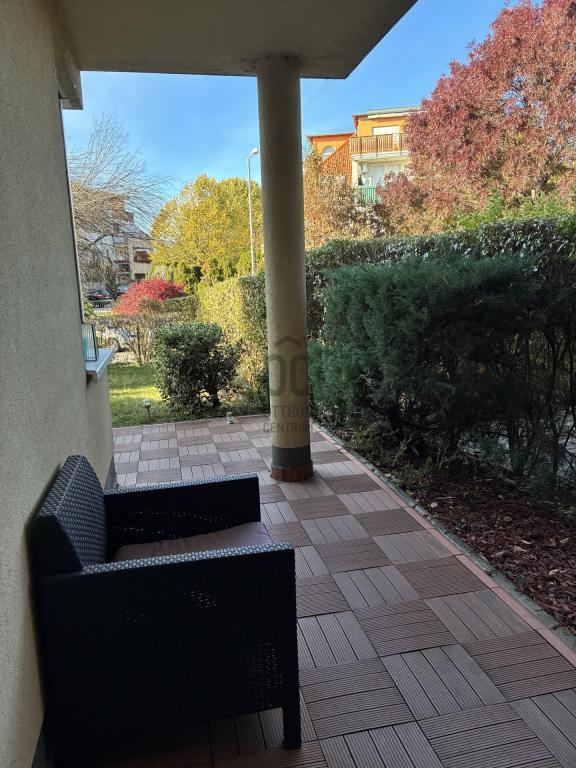 A lakáshoz tartozik egy 80 nm-es kizárólagos használatú kertrész, ami akár családi-baráti összejövetelek tartására is kiválóan alkalmas.