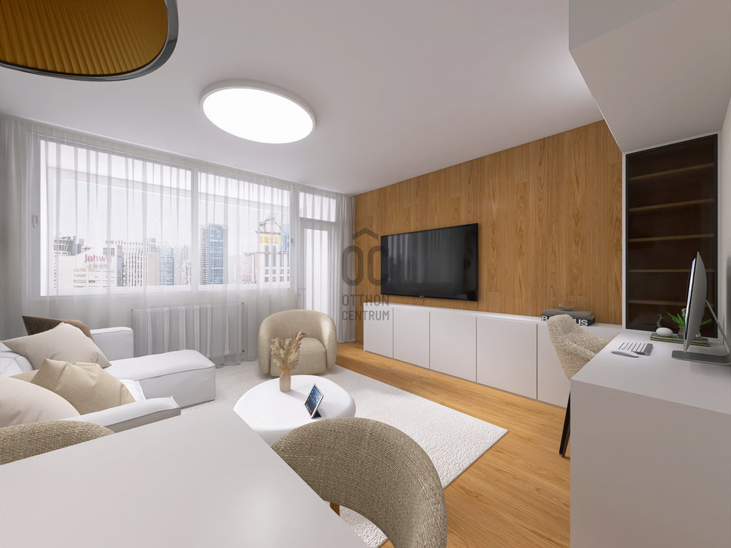 Külön konyhás elrendezés, jól szeparálható háló- és dolgozórész, ideális családoknak, otthonról dolgozóknak is.