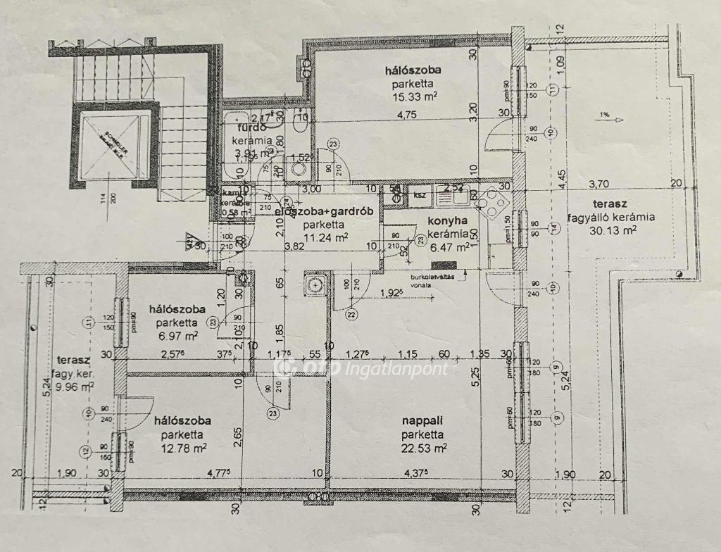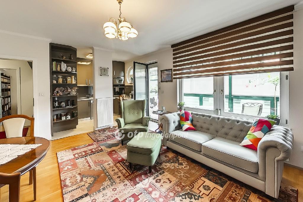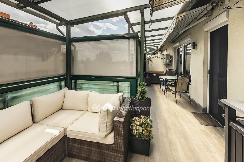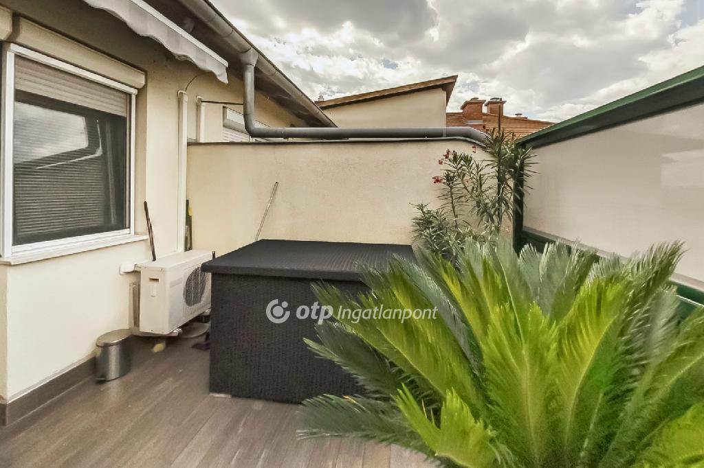 Az ingatlan 80 (lakás) + 40 (dupla terasz) m2-es, 3+1 szobás, 2 erkélyes, D-K és D-Ny tájolású egyedi fűtéses, liftes házban lévő, 4. emeleti penthouse jellegű lakás, amelyhez tartozik egy egyedi kivitelezésű, egy éves, méretre gyártott, újszerű, gépesített konyha is, Budapesten, a 18. kerület kertvárosias részén, parkokkal körülvéve a Szent Lőrinc sétányon.