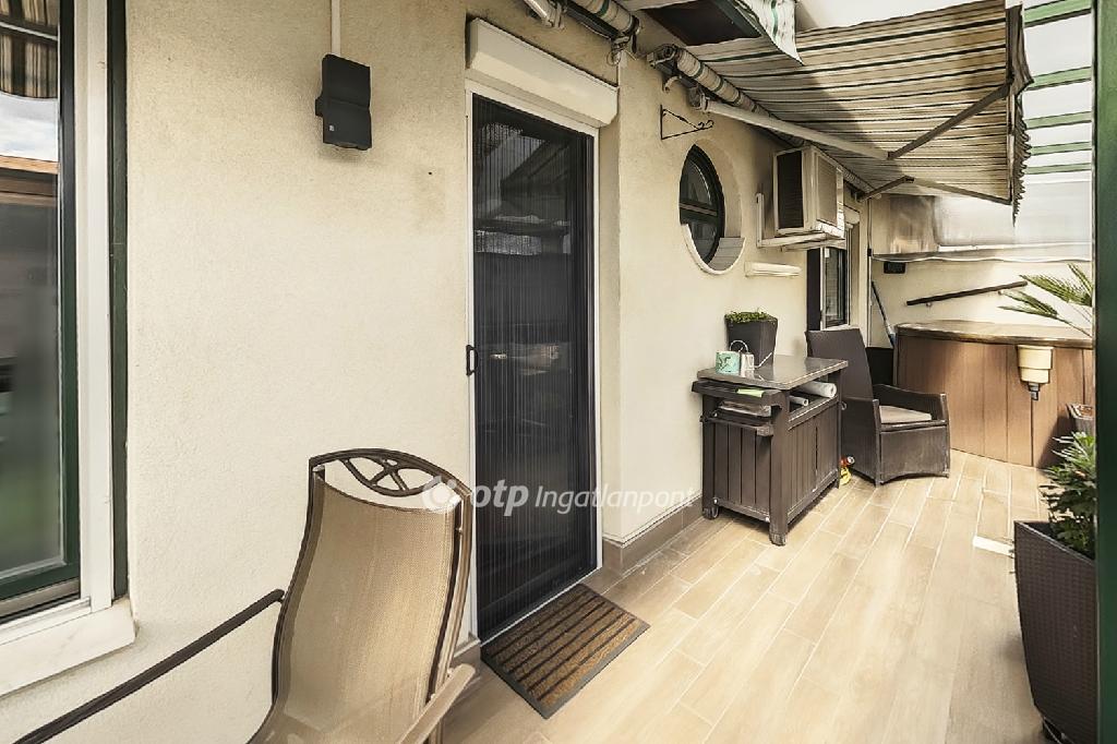 A lakáshoz 2 db erkély tartozik. Az egyik kb 30 m2, a másik kb 10 m2. Mindkét teraszon prémium árnyékolók vannak. Különleges, elektromos oldalárnyékolók, amelyek megakadályozzák a belátást az erkélyre, ezzel megteremtve az intim szférát, alattuk hőszigetelt, színes üvegek, amelyek nem engedik be a nap melegét. Fölöttünk szintén elektromos, kinyitható minőségi árnyékolók védnek a nap káros sugarai ellen.