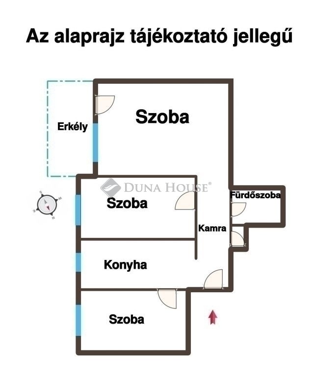 A lakás tulajdoni lap szerint 47 nm, azonban a konyhából nyíló tárolóhelyiséget szobává alakították, így a hasznos alapterület 56 nm