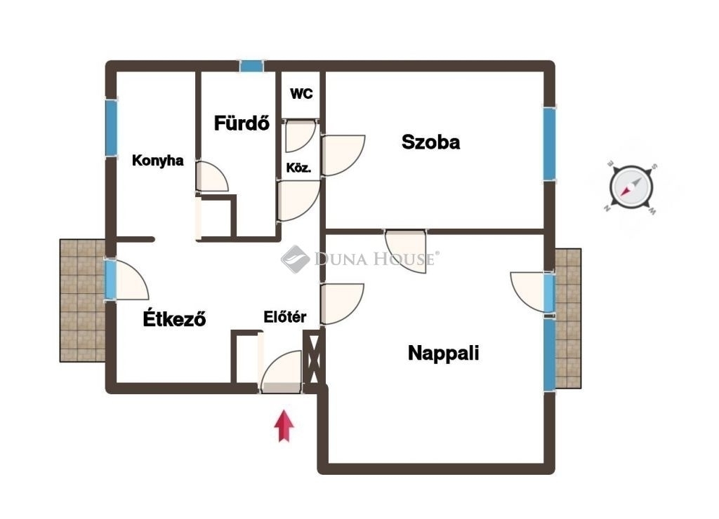Az ingatlan ideális elrendezésű, két oldalra nyíló erkélyekkel rendelkezik, minden