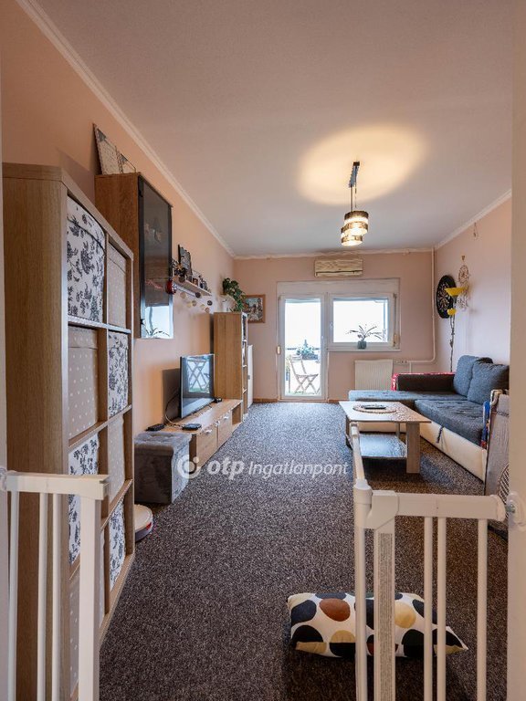 A lakás műanyag nyílászárókkal felszerelt, a nappaliban klíma gondoskodik a komfortérzetről.