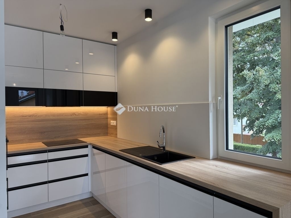 Kispest kertvárosi részén, csendes utcában kínálunk eladásra egy modern, energiatakarékos, kétszintes lakást, amelyhez saját kertrész és fedett terasz is tartozik.