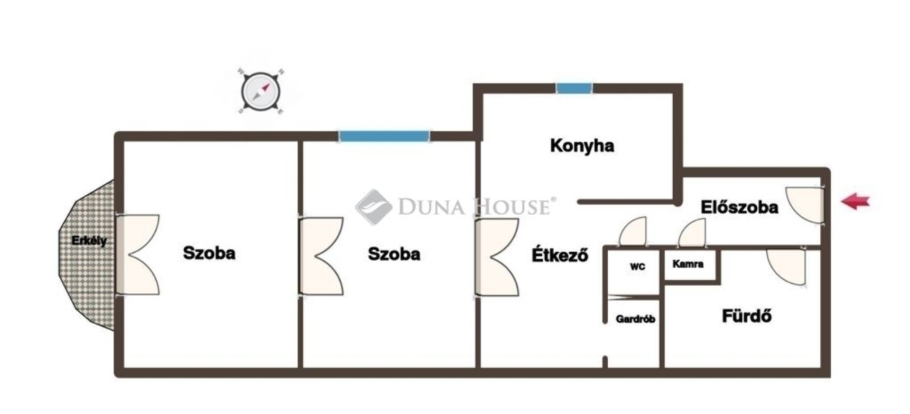 Helyiségek: tágas nappali, hálószoba, külön étkező, konyha és sarokkáddal felszerelt fürdőszoba, jól használható gardrób.