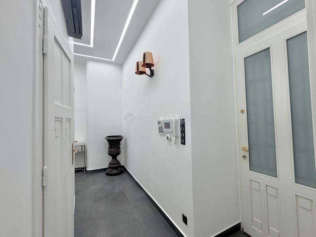 Tágas, polgári lakás a Lövőház utca sétáló részénA Lövőház utca sétáló része Buda egyik legismertebb és legkedveltebb városi környezete. Éttermek, kávézók, üzletek, a Mammut bevásárlóközpont és a Millenáris park néhány perc sétára találhatók mégis megmarad az utca sajátos, nyugodt hangulata.Ebben a környezetben kínálunk megvételre egy 100 m²-es, igényesen felújított lakást, amely egy liftes, téglaépítésű társasház félemeletén található. A 3 métert meghaladó belmagasság és a jól átgondolt térszervezés kellemes, tágas térérzetet ad az ingatlannak.A lakás elosztása praktikus és jól használható:32 m²-es amerikai konyhás nappali, prémium beépített gépekkelkét tágas hálószobaegy félszobadupla komfortos kialakításA műszaki tartalom és a felszereltség is igényes:légkondicionálásgázkazános fűtéstávirányítású alumínium redőnyökbiztonsági bejárati ajtófaliszéftávolról vezérelhető riasztó- és kamerarendszerigényes belsőépítészeti megoldásokParkolási lehetőség a közelben biztosított: a Millenáris Avantgarde Irodaházban őrzött teremgarázs hely bérelhető, 024 órás portaszolgálattal.Ha Buda egyik legjobb utcájában keres elegáns városi otthont, akkor ez a lakás egy olyan lehetőség, amit érdemes személyesen is megnézni. Hibás hirdetés bejelentése