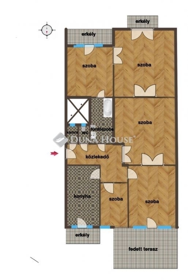 A konyhából egy harmadik, kert felé néző kis erkély is elérhető.