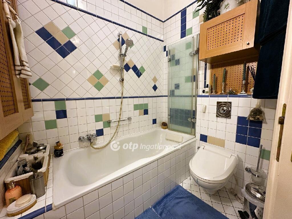 A lakás dupla komfortos, a fürdőszoba és a mellékhelyiség burkolatai és díszítőelemei egységes stílust képviselnek minőségi Hansgrohe szaniterekkel. A WC beépített bidével rendelkezik, a fürdőkád praktikus, összecsukható paravánnal felszerelt, a további tárolóhelyek pedig a mindennapi kényelmet szolgálják. A tágas konyha teljesen gépesített, a szekrények kamraként funkcionáló, jól szellőző tárolórészekkel vannak ellátva.