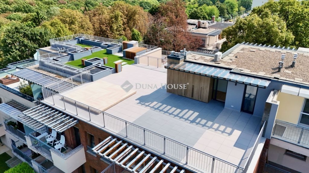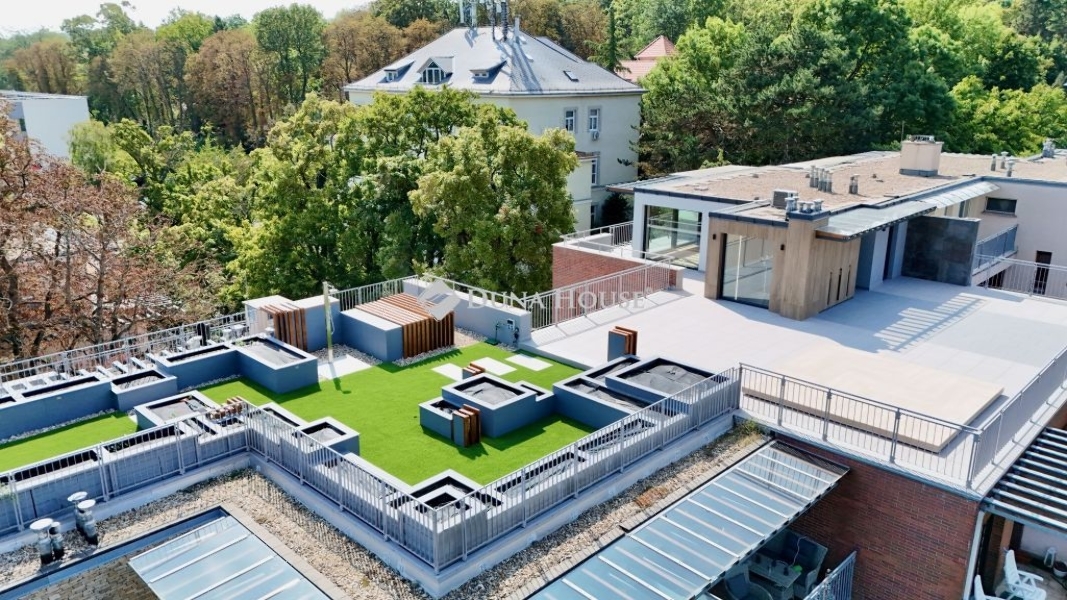 teljeskörűen felújított, belsőépítész által tervezett, panorámás Penthouse luxuslakás eladó, több mint 300 m² terasszal és exkluzív kialakítással. A lakás minden részlete a minőséget és a kényelmet szolgálja, a hatalmas tetőterasz pedig egyedülálló lehetőséget kínál privát wellness vagy fitness kialakítására.