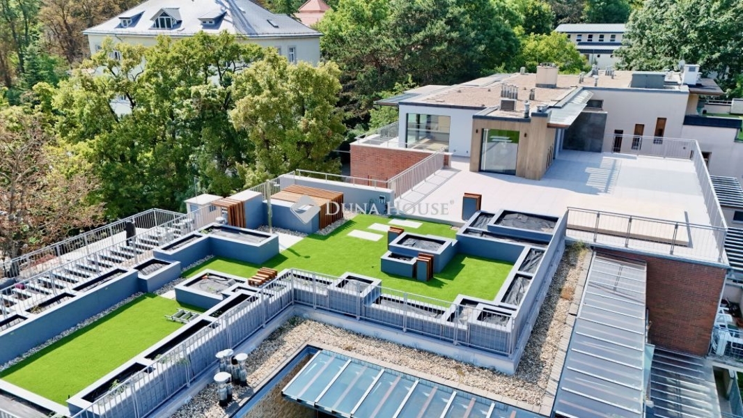 A hatalmas tetőteraszról lélegzetelállító panoráma nyílik a Budai-hegyekre. A csendes mellékutcás környezet a természet közelségével és a tiszta levegővel ideális választás mindazoknak, akik kompromisszumok nélkül keresik a luxust és a nyugalmat.