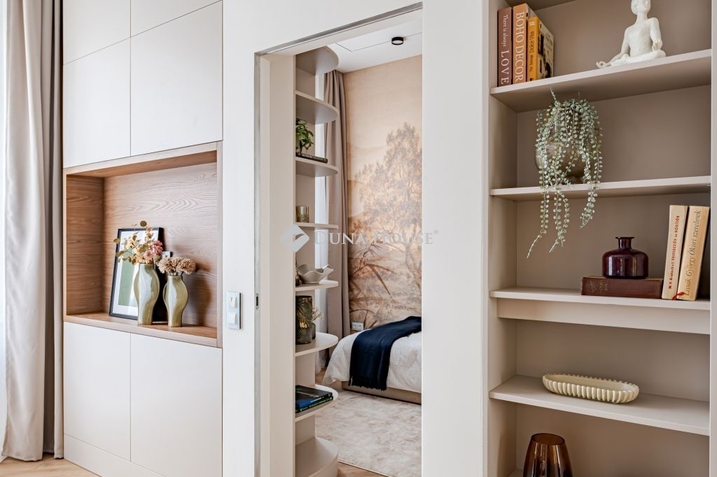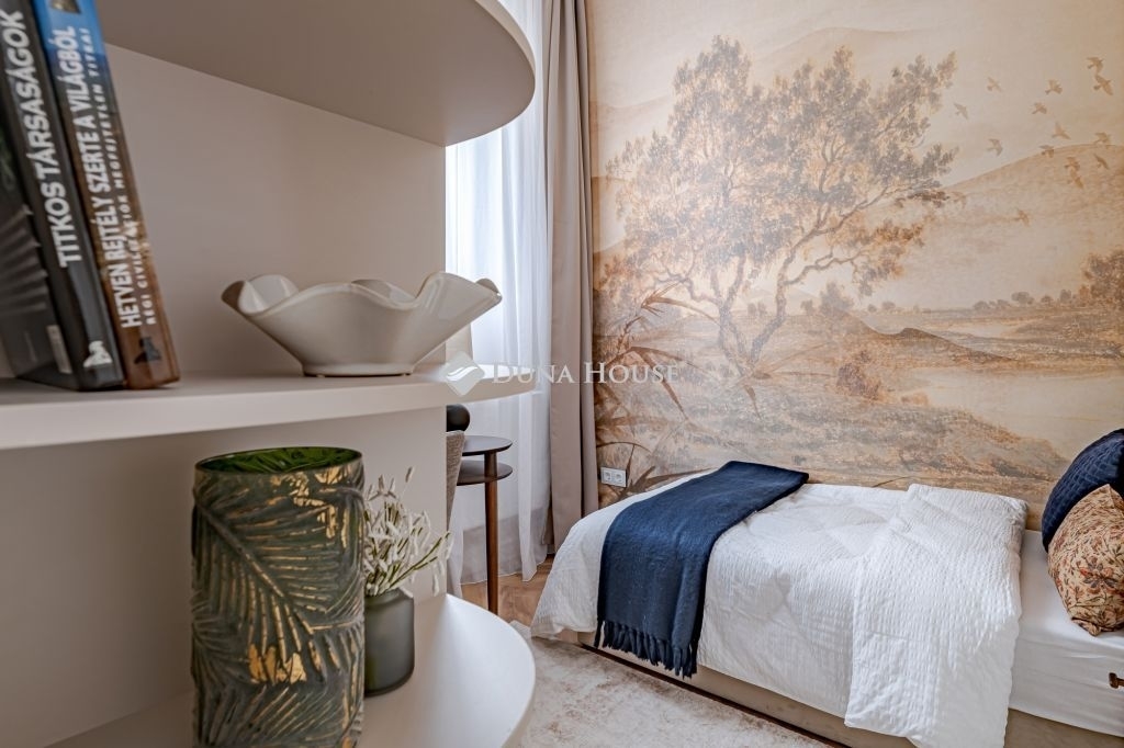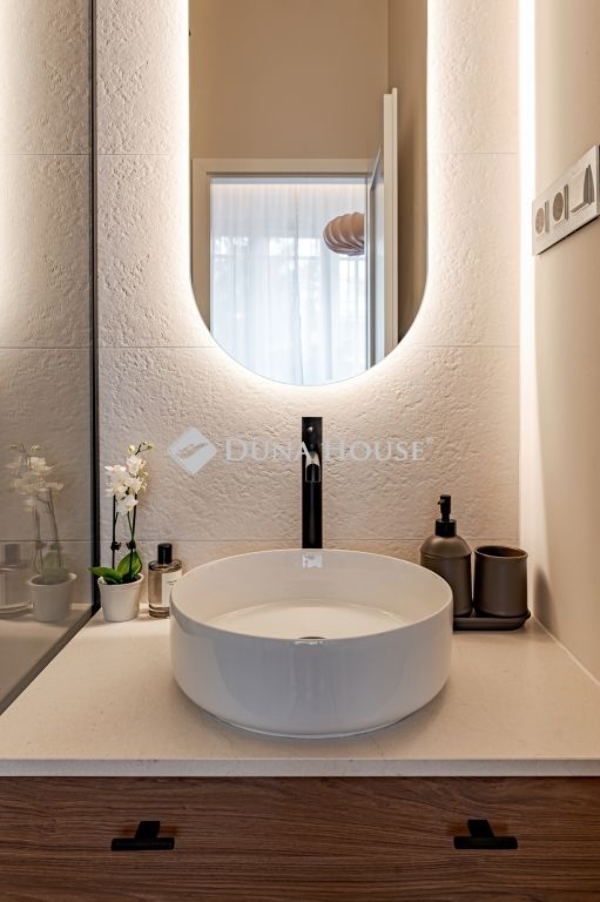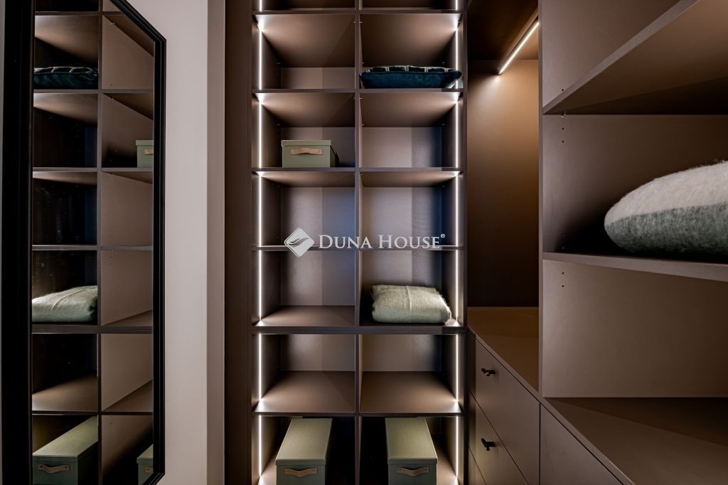 A nappaliban és a főhálóban ELEKTROMOS REDŐNYÖK, a biztonság érdekében TÁVFELÜGYELETRE KÖTHETŐ RIASZTÓ és BIZTONSÁGI ÜVEGEZÉS található.Privát terek és funkcionalitásA nappaliból nyíló főháló saját zuhanyzós fürdővel és gardróbbal rendelkezik. A második háló vendégszobának, dolgozószobának vagy gyerekszobának is ideális, nagyméretű beépített gardróbbal, szintén CSENDES, kertre néző kilátással. A mosókonyhában található a cirkó és itt került kialakításra a mosó- valamint szárítógép helye.Ház és lokációA társasház rendezett, folyamatosan karbantartott, KAMERÁVAL FELSZERELT, KÉT LIFTTEL rendelkezik.