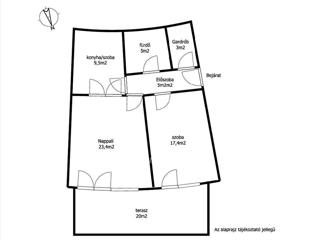 A lakás jelenlegi kialakítása: