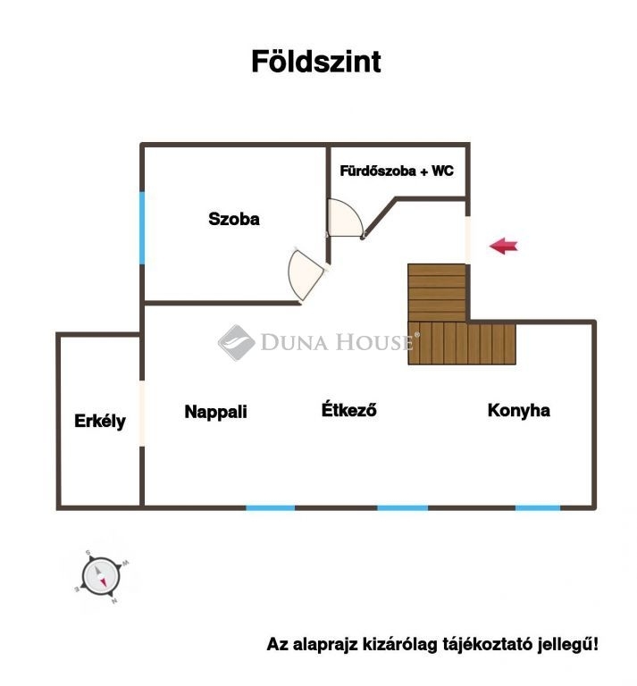 ** Itt kapott helyet a tágas amerikai konyhás nappali, egy hálószoba beépített gardróbbal, valamint a zuhanyzós fürdőszoba.